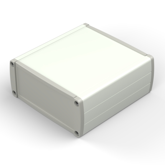 Profilgehäuse aus Aluminium mit qualitativ hochwertiger Oberflächelackierung. Zwei ABS-Abschlußdeckel, integrierte Führungsrippen für PCB und eingelassene Oberfläche zur Aufnahme einer Tastatur. Sechs Standardprofilvarianten mit verschiedenen Größen sind zur Verfügung. Die Modelle mit „-E“ haben Frontlaschen zur Wandmontage. Montage mit acht Schrauben.