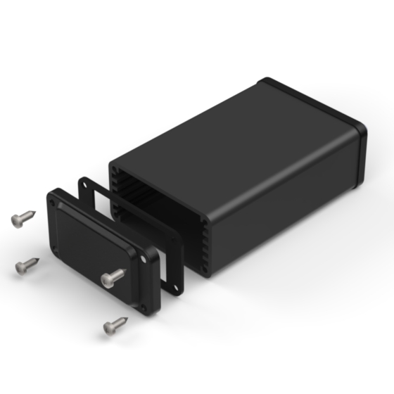 Boîtiers en aluminium extrudé avec revêtement par poudre d’haute qualité, très compacts, avec deux couvercles en aluminium munis de jeu de joint de protection contre l’eau et la poudre, guides internes pour PCB. Montage par huit vis.